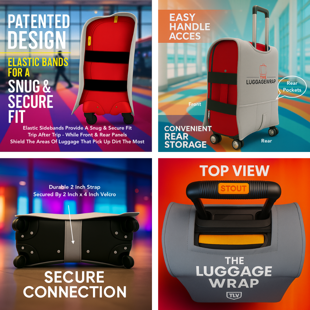 - TAILORED CARRY-ON FIT: Designed to snugly fit most standard small rolling suitcases, this neon luggage wrap envelops your luggage securely without slipping. It protects your bag without adding bulk or interfering with handles or wheels.
