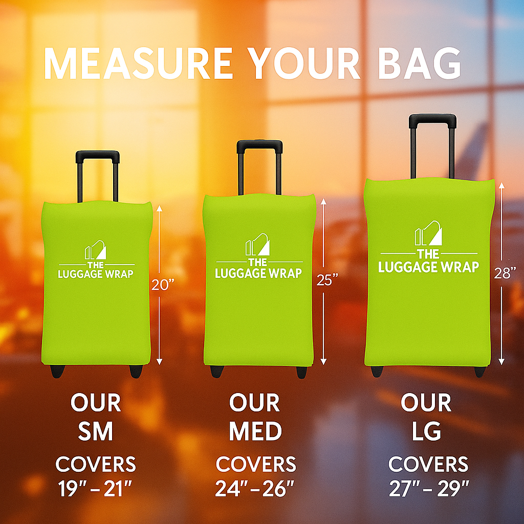 - TAILORED CARRY-ON FIT: Designed to snugly fit most standard small rolling suitcases, this lime luggage wrap envelops your luggage securely without slipping. It protects your bag without adding bulk or interfering with handles or wheels